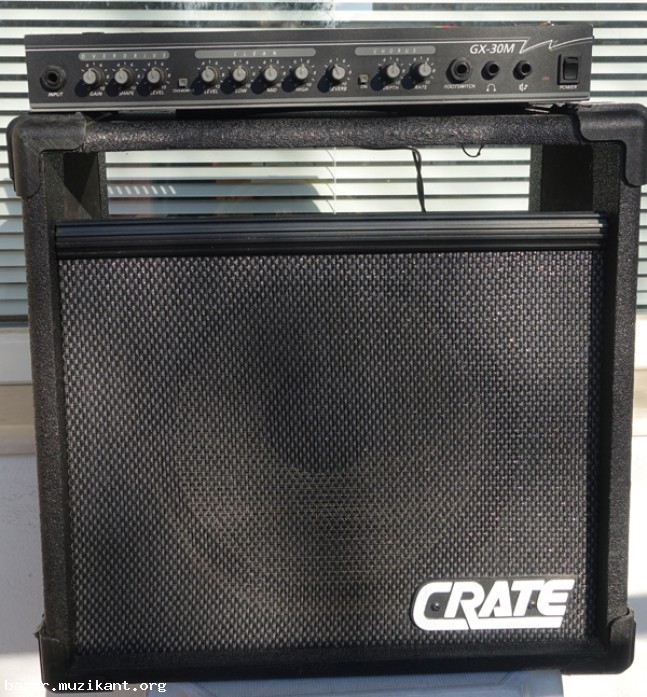 Продавам Китарен усилвател 30 вата. Свален от кубе CRATE GX-30M Два канала чист и мръсен. Хорус ефект. Опция за включване на пружинен реверб.