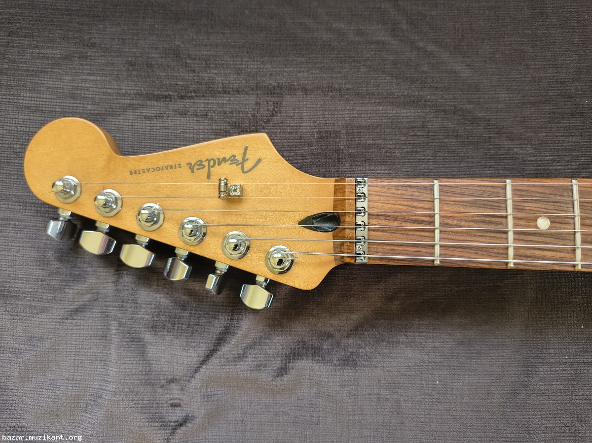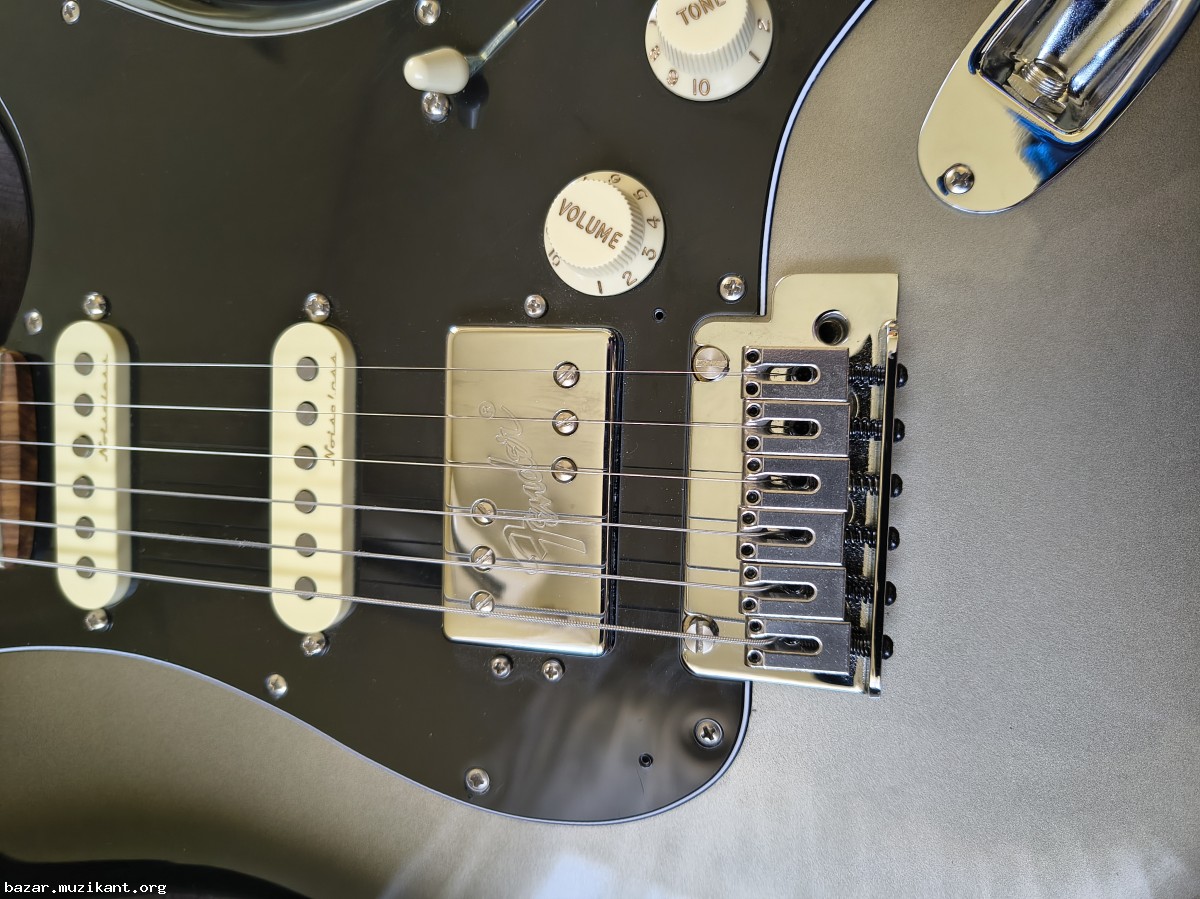 Продавам Fender Player Plus Stratocaster.Единствената забележка е, че има две миниатюрни дупчици на пикгарда от поставяне на миди адаптер.Китарата е модифицирана с Roller Nut и Roller string tree.Push pull tone control превклчючва хъмбъкера от серия на паралел.Така всички позиции на китарата са noiseless.2-Point Synchronized Tremolo with Block Saddles.Pau ferro fingerboard with 12" radius and 22 medium jumbo frets.Rolled fingerboard edges.Има оригинален калъф Fender.Причината за продажбата е,че не се ползва, защото повечето време свиря в чужбина, а там имам друга китара.